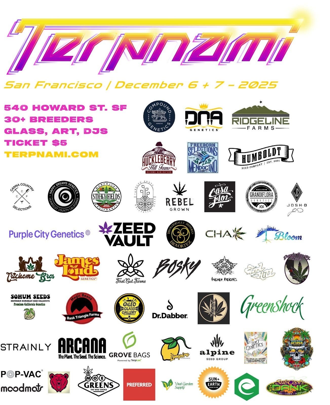 Tickets remain $5 for the Terpnami seed show Dec. 6-7 in SF. The Show Program is live. The Terpnami magazine is $15. We’re going to have a 2nd-ever Moon Valley 6-star full-melt hash drop party Friday, Dec. 5 at Moe Greens as the pre-party for Terpnami. RSVP to get the pre-order form.